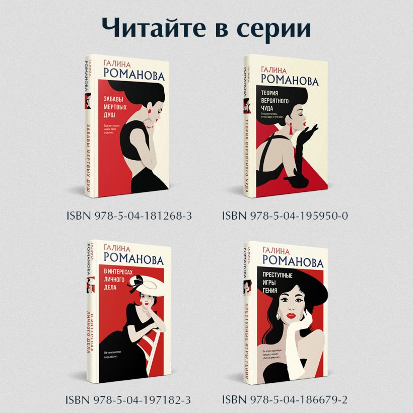 Галина Романова — подлинный знаток человеческих чувств и отношений. В ее детективных мелодрамах из серии «Метод женщины» переплетаются и кровь, и слезы, и любовь. Все, как в реальности, когда один-единственный шаг отделяет нас от любви до ненависти, от дружбы до любви, от рождения до смерти. Нежные чувства проверяются настоящими испытаниями, где награда — сама жизнь.
