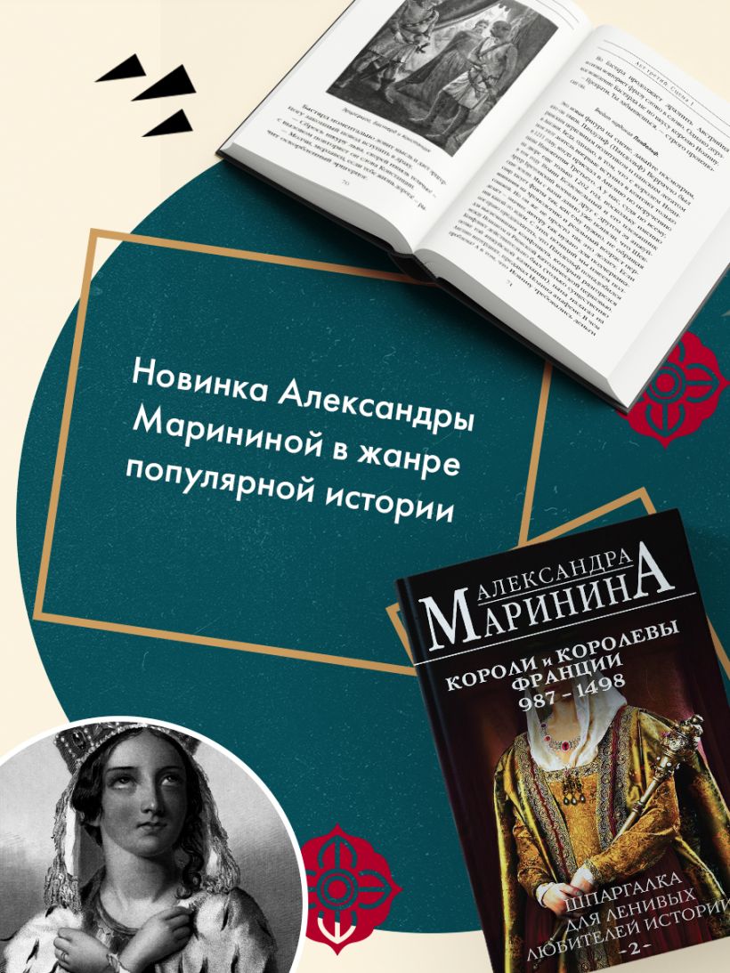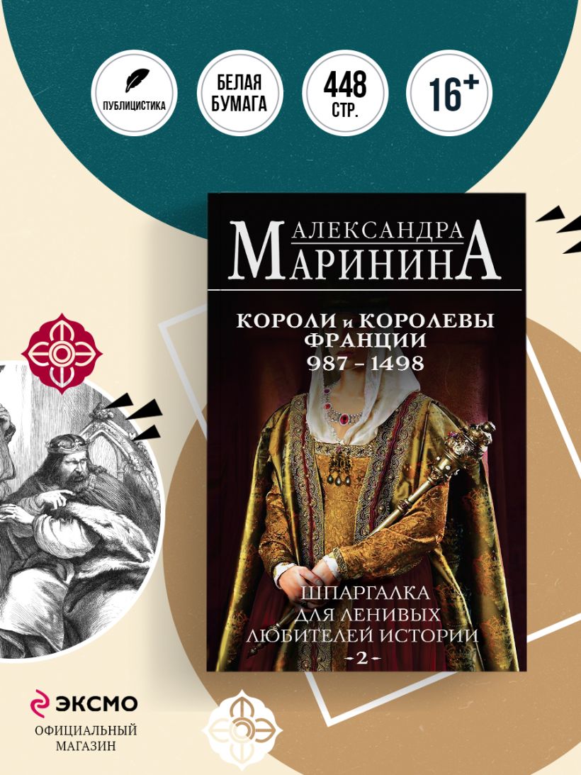 Новая историческая «шпаргалка» от Александры Марининой. На этот раз – французская. Париж, Версаль, блистательные короли, дерзкие королевы, изящные фрейлины и смелые мушкетёры… Ну кто из нас с детства не был очарован Францией и ее историей! C особым «марининским» юмором в книге рассказывается история французских королей начиная с Гуго Капета, основателя династии Капетингов до Карла Восьмого из династии Валуа. Вы узнаете что это были за люди, с какими талантами и недостатками, какими надеждами и мечтами они жили.