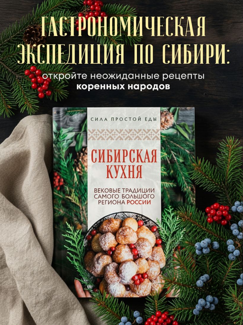 Надоела кулинарная рутина? Книга «Сибирская кухня» подарит вам удивительное путешествие по самому большому региону России, в кухне которого сплетены кулинарные традиции более 40 разных живущих в Сибири народов. Здесь вы найдете рецепты питательных завтраков с кашей по-якутски и оладьями из долганской кухни, соберете коллекцию обеденных рецептов с рыбными и мясными супами из кетской и селькупской кухни, подадите на горячее плов по-бурятски, рыбные биточки или жареные пельмени так, как готовят их в тувинской кухне, а уж разнообразие традиционной сибирской выпечки заставит многих искать предлог напроситься к вам в гости. Готовьте с удовольствием, ешьте сами и делите со своими близкими гастрономическое удовольствие от кухни сибирских народов.