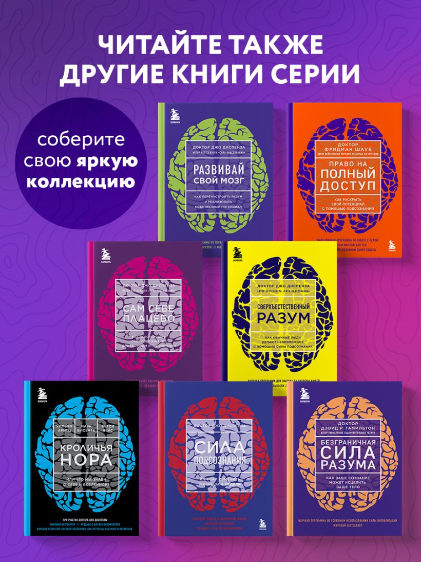 Доктор Диспенза — профессор нейрохимии и нейробиологии, руководитель клиники интегрированной медицины. Автор мировых бестселлеров по развитию мозга. Джо Диспенза выступает с мастер-классами в 26 странах на 5 континентах. Он обучил тысячи людей, как перенастроить свой мозг и тело, чтобы улучшить здоровье и жизнь. Диспенза — первый автор, которому удалось понятно, доступно и на научном языке объяснить работу подсознания.
