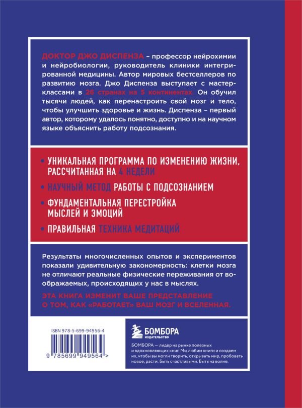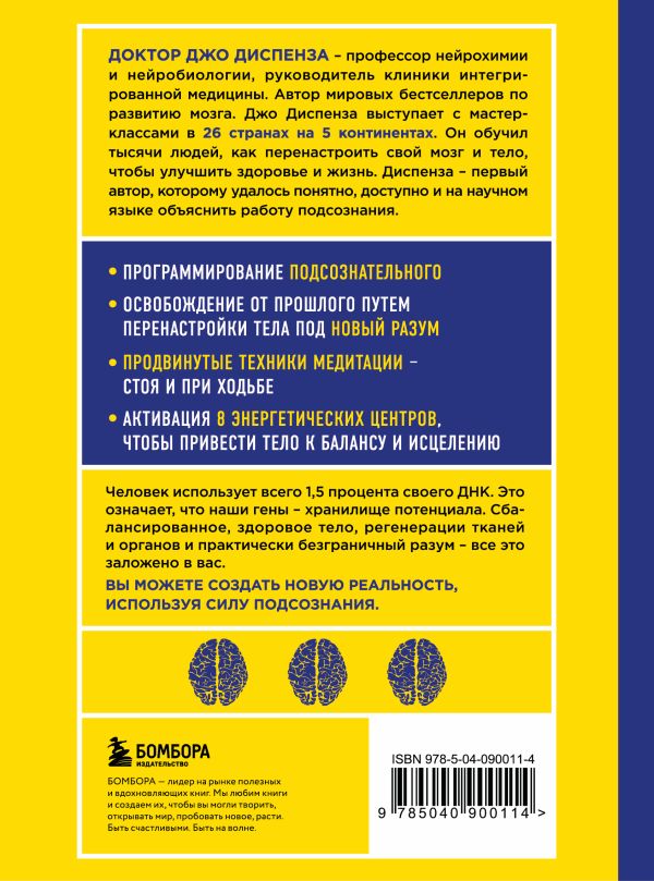 Доктор Диспенза — профессор нейрохимии и нейробиологии, руководитель клиники интегрированной медицины. Диспенза — первый автор, которому удалось понятно, доступно и на научном языке объяснить работу подсознания. Он обучил тысячи людей, как перенастроить свой мозг и тело, чтобы улучшить здоровье и жизнь.