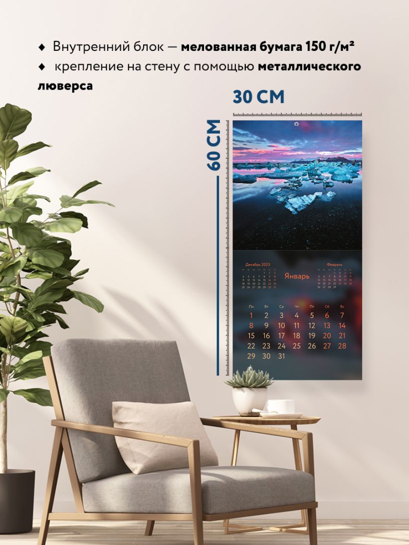 Тип календаря — настенный перекидной.