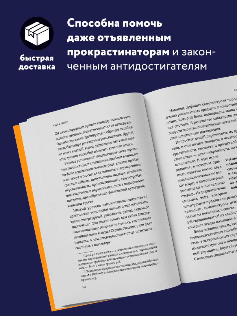 «Сила воли упоительно превосходна — начав читать, вы не сможете остановиться. Удивительное новое знание о самоконтроле, о котором увлекательно рассказывают исследовавший его ученый и журналист, сделавший из этих сведений сенсацию». — Дэниел Джилберт, Гарвардский университет, автор книги «Спотыкаясь о счастье», ведущий телепередачи PBS «Эта эмоциональная жизнь»