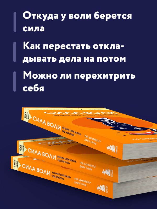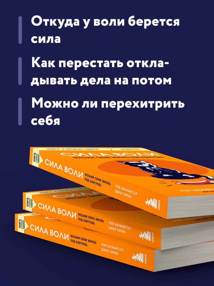«Сила воли затрагивает почти все стороны нашей жизни — повседневные дела, пенсионные накопления, спортивные занятия и многое другое. Тирни и Баумайстер создали замечательную книгу, где не только рассказывают об удивительных научных исследованиях, но и делятся с нами простыми способами, с помощью которых мы можем использовать это важное качество». — Дэн Ариэли, университет Дьюка. Автор книги «Предсказуемо иррационально»