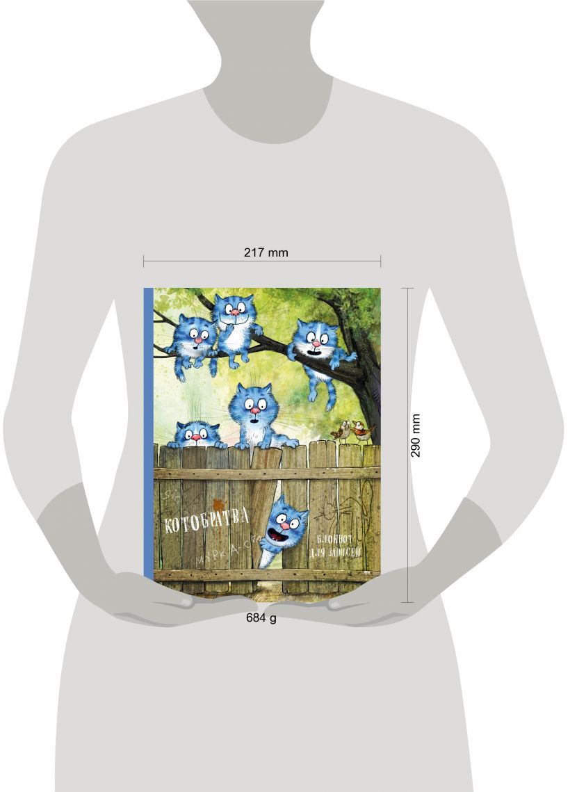 Легендарные синие коты осваивают новые горизонты! Теперь вы можете повстречать их на обложках большого блокнота формата А4. Внутри вы также найдете котоподсказки, которые нужно заполнить: что нужно сделать дома, а что на работе, что изучить, что запомнить, а еще есть место для коварных замыслов.