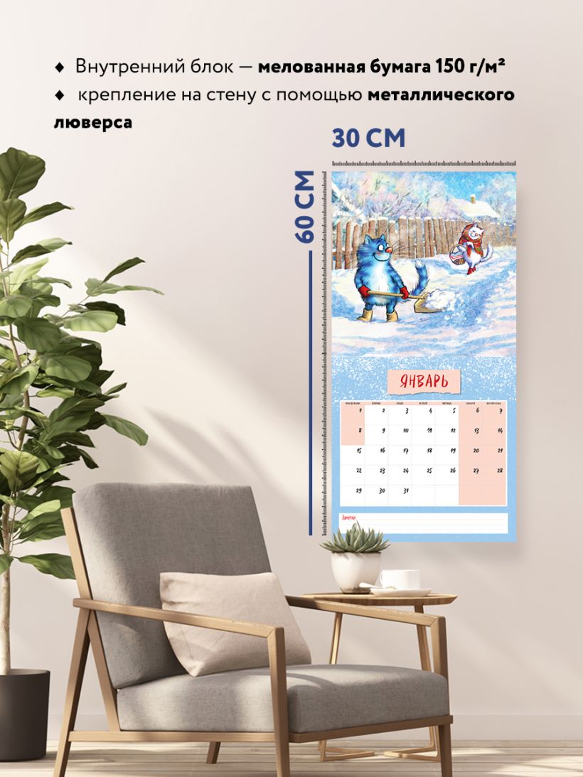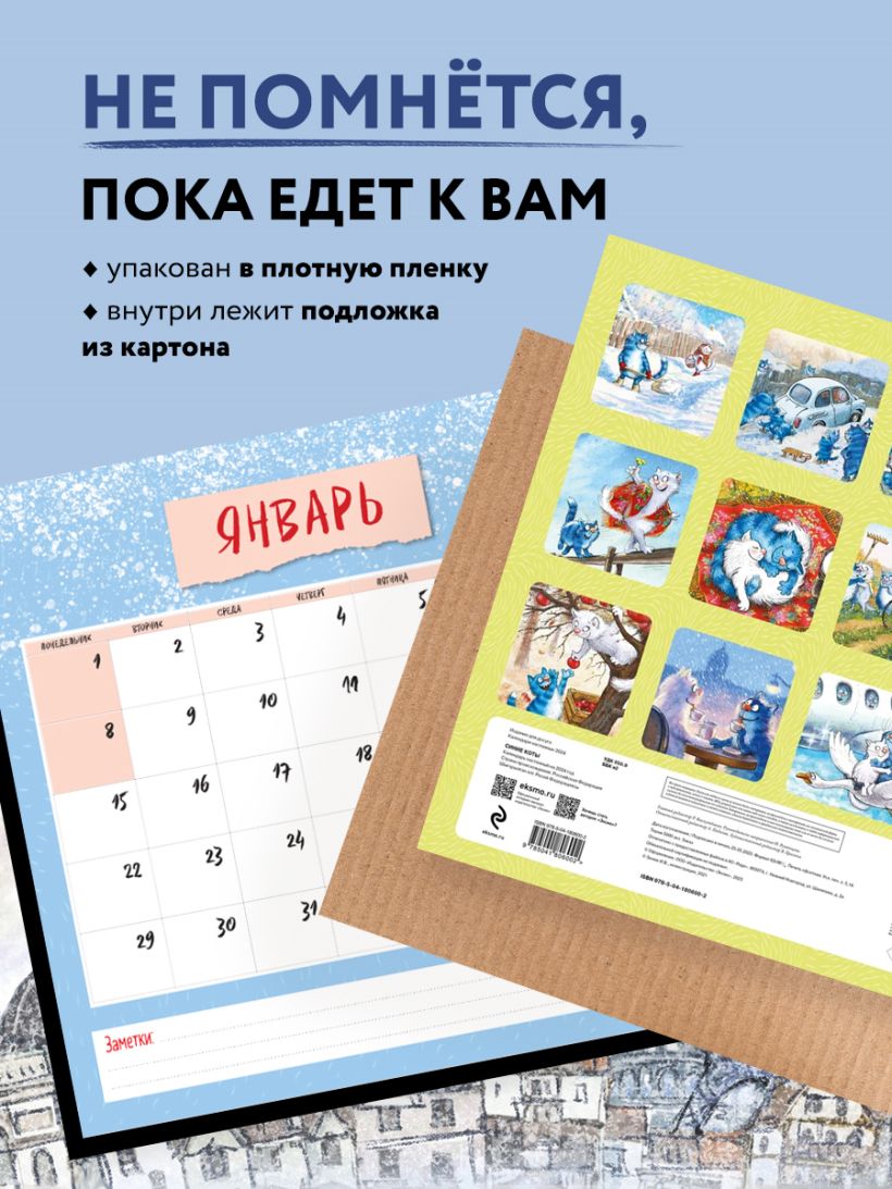Практичный и эстетичный, этот календарь каждый месяц будет радовать вас. Рина Зенюк — минская художница, автор знаменитых Синих Котов, завоевавших любовь тысяч поклонников в различных интернет-сообществах. Герои рисунков Рины Зенюк — веселые и серьезные, решительные, мечтательные, очень упитанные коты синего цвета — понравятся не только заядлым любителям котиков, но и тем, кто до этого был к ним равнодушен. Свой жанр художница определяет как «котизм». Синие коты гарантированно дарят хорошее настроение и не оставят равнодушным никого!