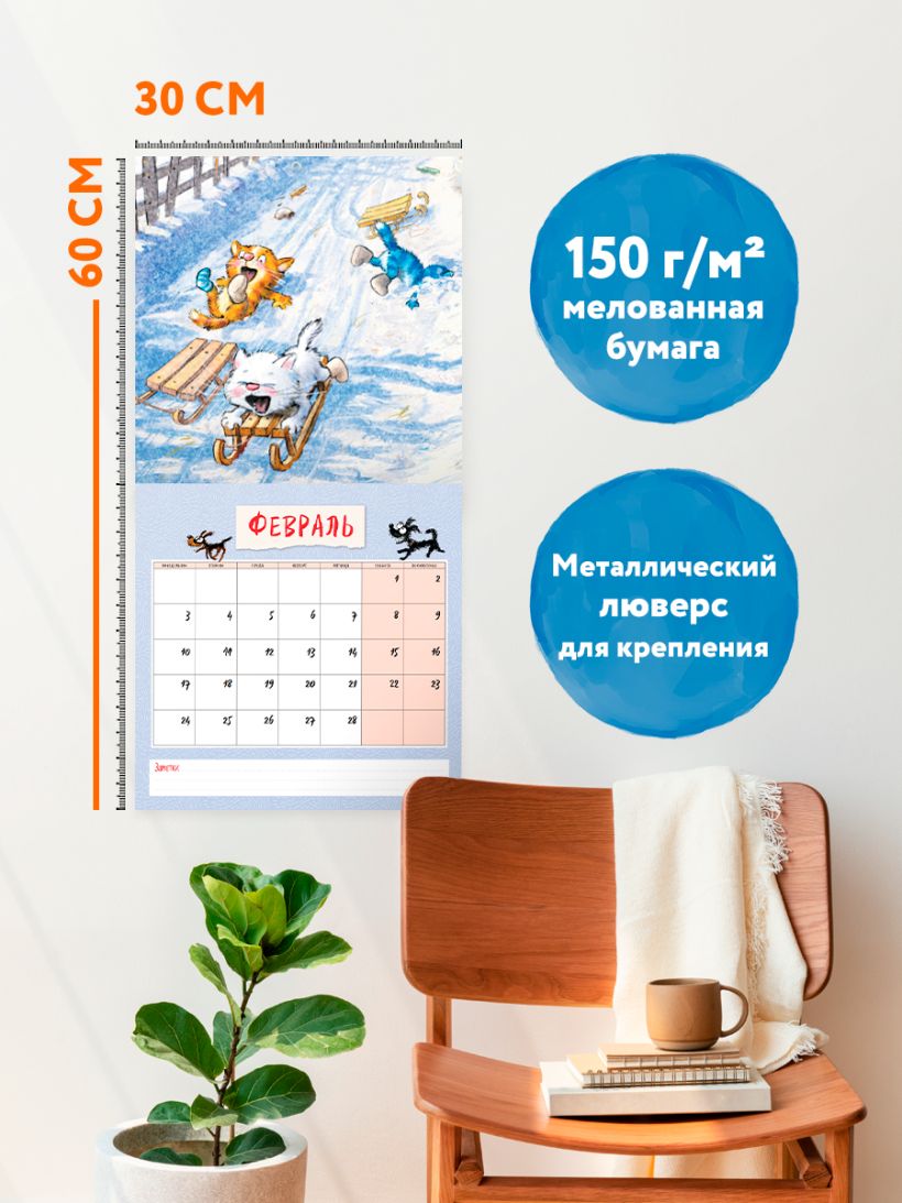 Наши настенные календари отличаются высоким качеством исполнения! Тщательно подобранные иллюстрации, напечатанные на глянцевой бумаге высочайшего качества, станут настоящим украшением дома, а в календарной сетке найдется место для ваших планов: большие клетки позволят делать записи и организовать свой год! В календаре также отмечены все государственные праздники.