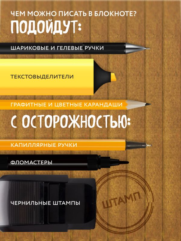 - Белая плотная бумага внутри — не бликует, не просвечивает, выдерживает даже маркерные хайлайтеры;