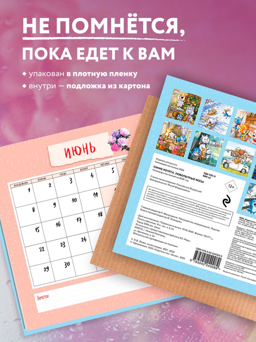 Календарь Татьяны Мужицкой с яркими иллюстрациями от Влады Коваль! В сетке — вдохновляющие цитаты автора и необычные праздники вроде «Всемирного дня “Спасибо”» и «Международного дня заботы о себе». Каждый месяц — как напоминание: жить можно с радостью, легкостью и любовью к себе. Совокупный тираж книг Татьяны Мужицкой — 360 000 экземпляров. Наши настенные календари отличаются высоким качеством исполнения! Тщательно подобранные иллюстрации, напечатанные на глянцевой бумаге высочайшего качества, станут настоящим украшением дома, а в календарной сетке найдется место для ваших планов: большие клетки позволят делать записи и организовать свой год! В серии настенных календарей издательства «ЭКСМО» каждый найдет тему по вкусу: великие художники, великолепные подборки с самыми знаменитыми произведениями искусства, легендарные кинематографические саги и игры, главные книжные авторы и бестселлеры, фотографии и иллюстрации любимых животных и многое-многое другое! Технические параметры: - Тип календаря — настенный перекидной. - Год — 2026. - Календарная сетка — с разбивкой по месяцам. - Вид скрепления — скрепка. - Ширина — 30 см. - Высота — 30 см. - Внутренний блок — мелованная бумага 150 г/м2. - Подложка — плотный гофрокартон для поддержания формы. - Индивидуальная упаковка в плотный целлофановый пакет.