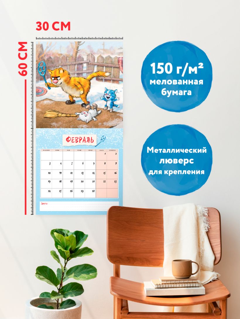 Забавный календарь с милыми синими котятами Рины Зенюк будет радовать радовать вас каждый месяц. Рина Зенюк — минская художница, автор знаменитых Синих Котов, завоевавших любовь тысяч поклонников в различных интернет-сообществах. Герои рисунков Рины Зенюк — веселые и серьезные, решительные, мечтательные, очень упитанные коты синего цвета — понравятся не только заядлым любителям котиков, но и тем, кто до этого был к ним равнодушен. Свой жанр художница определяет как «котизм». Синие коты гарантированно дарят хорошее настроение и не оставят равнодушным никого!