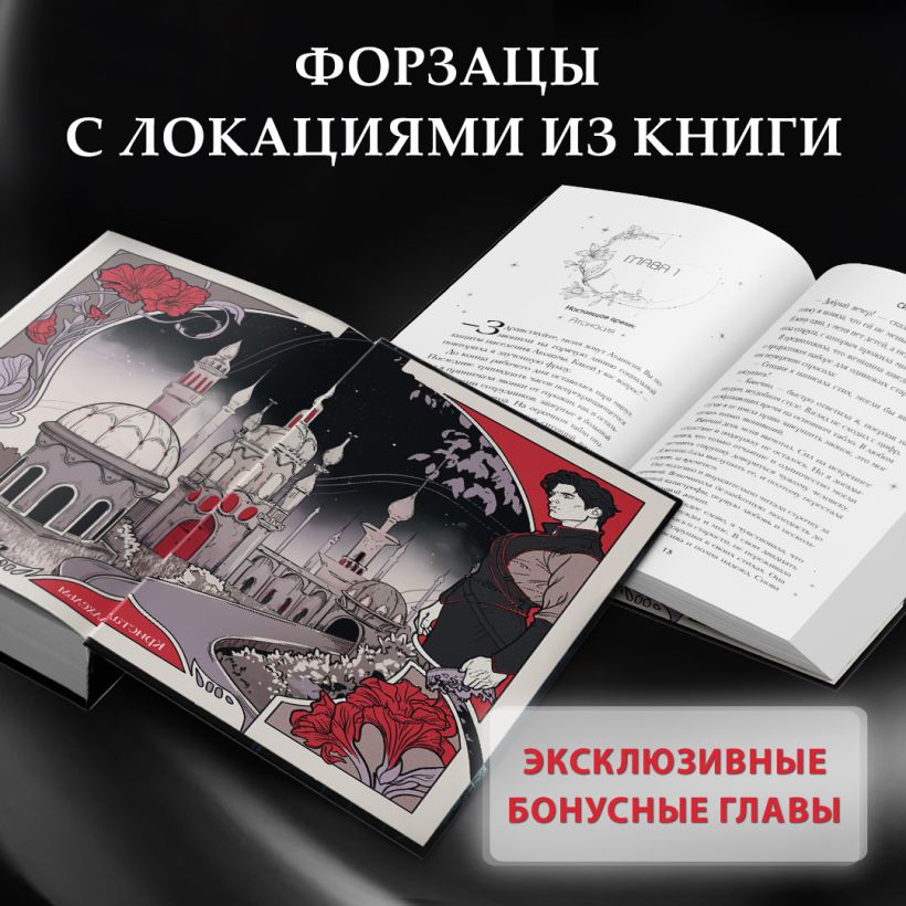 Внутри вы найдете бонусные главы от Сии Тони, которые написаны специально для бумажного издания, а также цветные форзацы. Кроме того, в каждом экземпляре первого тиража вас ждет открытка с артом и пожеланием от автора!
