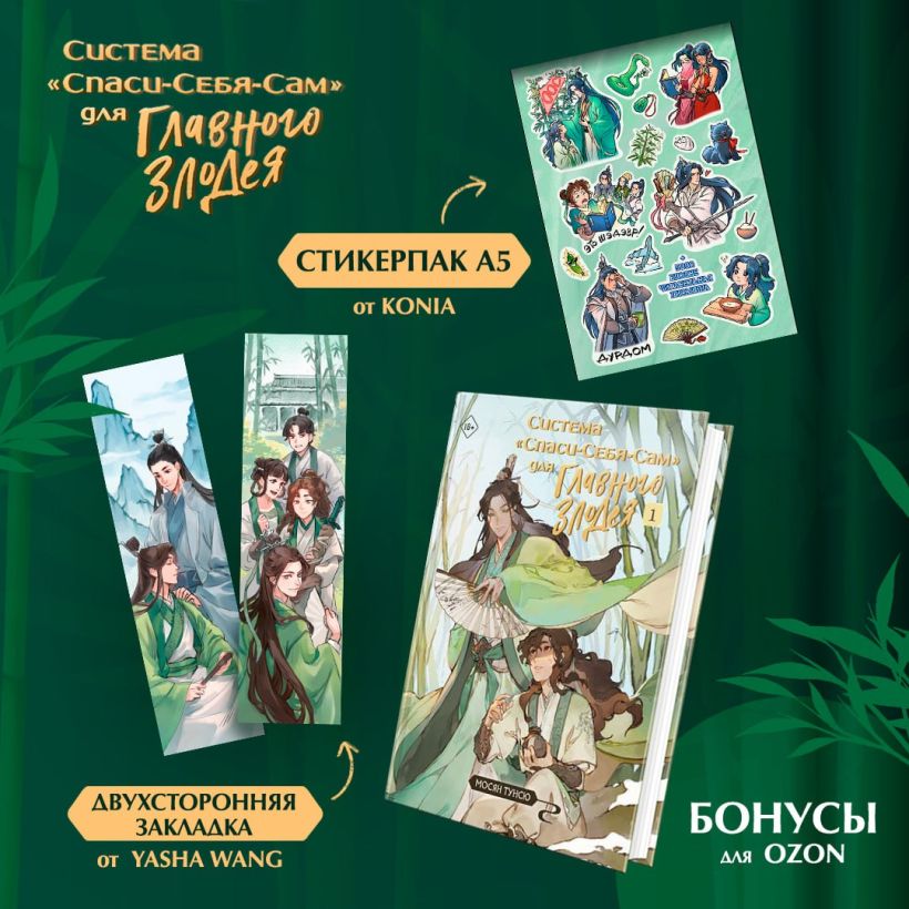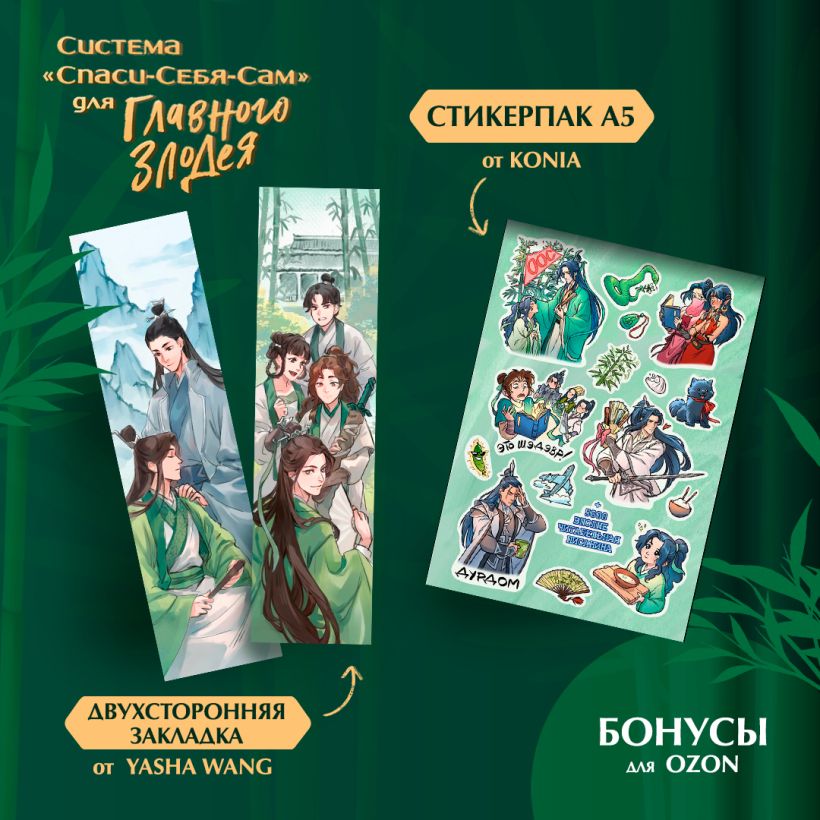 Система "Спаси-Себя-Сам" для Главного Злодея. Том 1. Мерч для Озон (стикерпак + закладка)