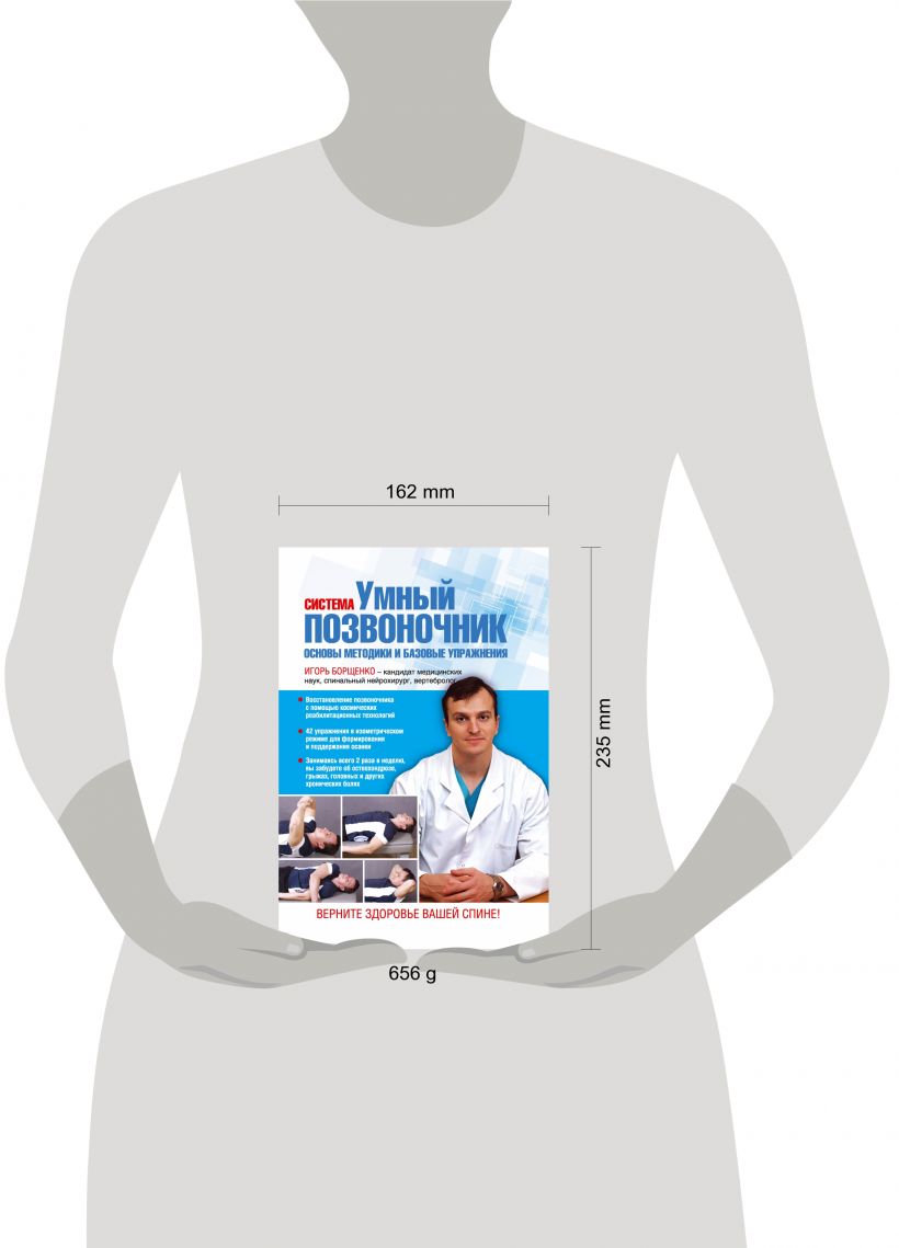 Предлагаемая система изометрических упражнений "Умный позвоночник" нейрохирурга Игоря Анатольевича Борщенко позволяет сформировать мышечный корсет, бережно и без повреждений воздействуя на мышцы шейного отдела, от неправильной работы которых страдает зрение, слух, повышается артериальное давление, беспокоят головные боли; мышцы грудного отдела, влияющие на работу органов дыхания, сердца и нормальный кислородный обмен; мышцы поясничного отдела, ответственные за нормальное функционирование органов пищеварения и мочеполовой системы. Движения и позы, разработанные Игорем Борщенко, укрепят мыщцы, которые важны для здорового функционирования позвоночника, не травмируя его. Выполняя указанные в книге упражнения 2 раза в неделю, вы обретете идеальную осанку и крепкие мышцы, а благодаря этому забудете о многих хронических болезнях!
