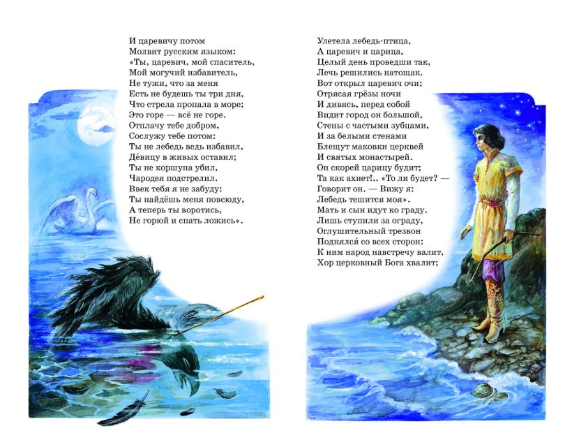 Именно с этих строк начинается «Сказка о царе Салтане...» и знакомство ребёнка с волшебным миром Александра Сергеевича Пушкина. А впереди ждут встреча с золотой рыбкой, превращение Царевны Лебедь в прекрасную девушку, состязания работника Балды с чертями, путешествие Царевича Елисея по свету в поисках своей невесты и много других волшебных событий. Сказки Александра Пушкина выразительные, легко запоминаются детьми, а благодаря богатому языку расширяют их словарный запас.