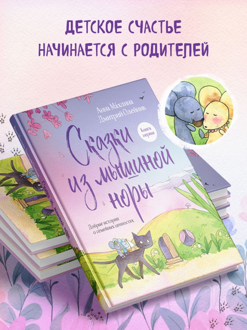 Под обложкой книги "Сказки из мышиной норы" хранятся волшебные и очень добрые истории о приключениях мышиного семейства, QR-коды, которые проводят читателя к прослушиванию песен из сказок, прекрасные иллюстрации, которые развивают воображение и чувство прекрасного.