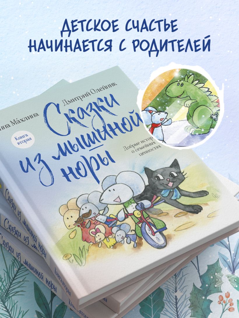 Под обложкой книги «Сказки из мышиной норы» хранятся волшебные и очень добрые истории о приключениях мышиного семейства, QR-коды, которые проводят читателя к прослушиванию песен из сказок, прекрасные иллюстрации, которые развивают воображение и чувство прекрасного.