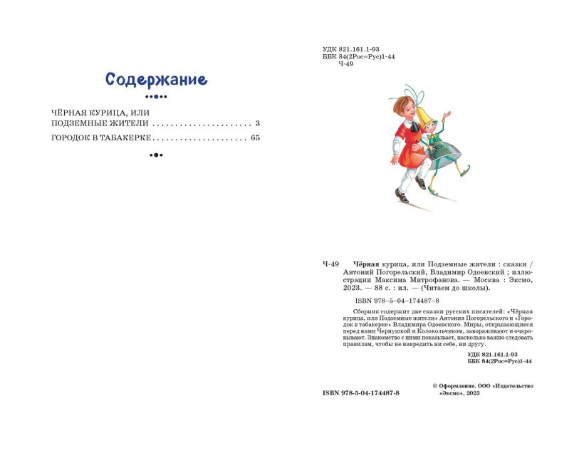 В сборник также вошла сказка Владимира Одоевского «Городок в табакерке», которая расскажет о любопытном мальчике Мише, отправившемся в приключение по неизведанному миру музыкальной табакерки.