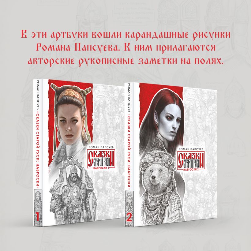 Мы решили издать их отдельным сборником. В него вошли эскизы известных работ Романа Папсуева и много нового: от грубых «почеркушек» и «записок на полях» до детально отрисованных иллюстраций, которые попали в финальные макеты артбуков.