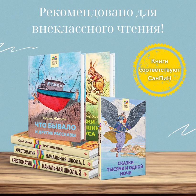 Сборник по программе для 1 класса. Русские народные сказки и сказки А. С. Пушкина, рассказы о детях Л. Толстого, В. Осеевой и В. Драгунского, истории о природе и животных В. Бианки, М. Пришвина и Н. Сладкова, а также стихи Н. Некрасова, К. Бальмонта, Саши Чёрного, А. Барто, В. Берестова, Б. Заходера и В. Лунина — всё, чтобы чтение стало любимой привычкой. Крупный шрифт, удобный формат и цветные иллюстрации делают чтение лёгким и радостным.