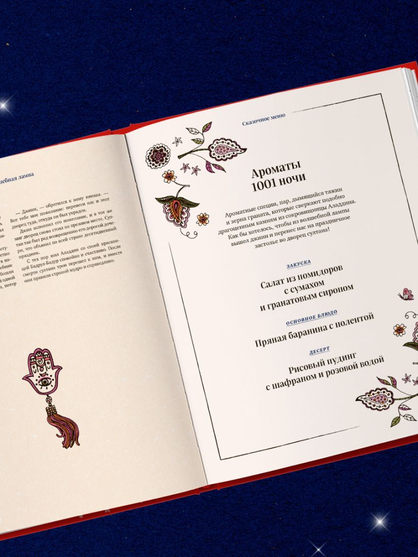 Вы найдете в этой книге множество блюд разных стран, как и сказки, любимые с детства: Красную Шапочку, Русалочку, Аладдина и волшебную лампу, Снежную Королеву и Золушку. Книга привлекательна именно этим сочетанием — изысканными праздничными блюдами и старинными сказками, под которые вы соберетесь за праздничным столом и с головой окунетесь в дивные воспоминания!
