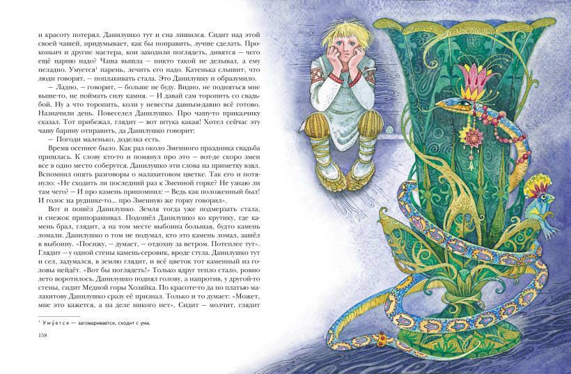 Красочные и детальные иллюстрации в неповторимом стиле были созданы известным художником Максимом Митрофановым. В его творениях малахитового цвета ящерки, как живые, вот-вот поползут, а драгоценные камни будто по-настоящему светятся на страницах книги.