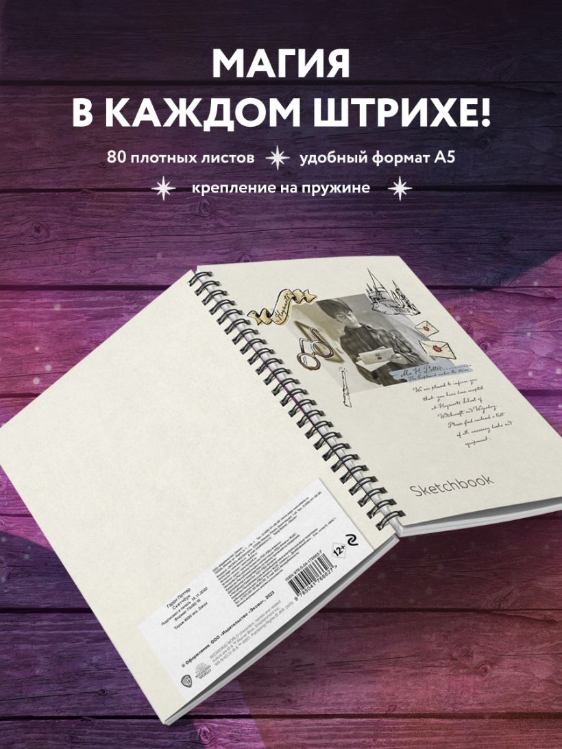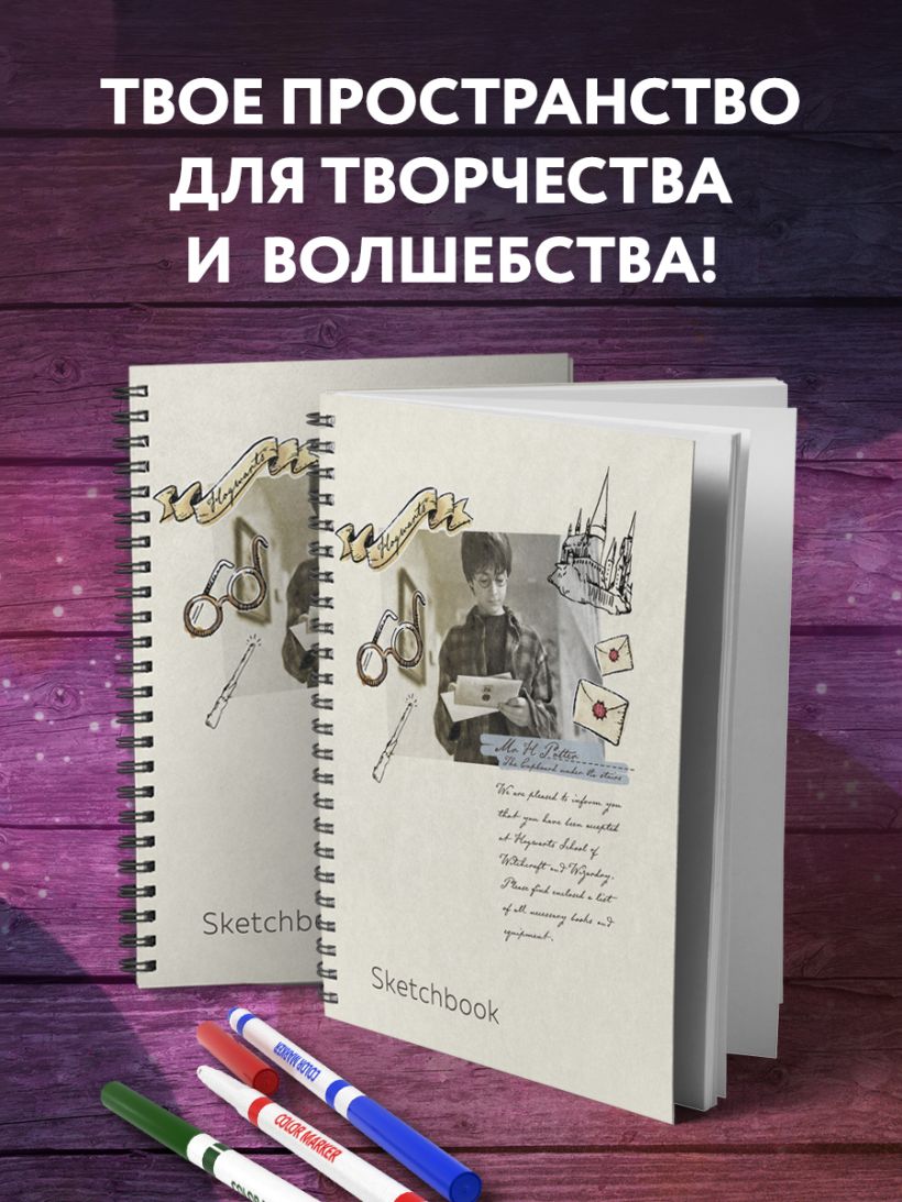 Да начнется магия! Новый скетчбук прямиком из величайшей вселенной Гарри Поттера! Откройте этот магический блокнот для рисования, и он станет вашим проводником в мир вдохновения и фантазии. Твёрдый переплёт и функциональный формат А5 сделают творчество удобным в любом месте, а плотная бумага выдержит все, от акварели и графики до невидимых чернил!