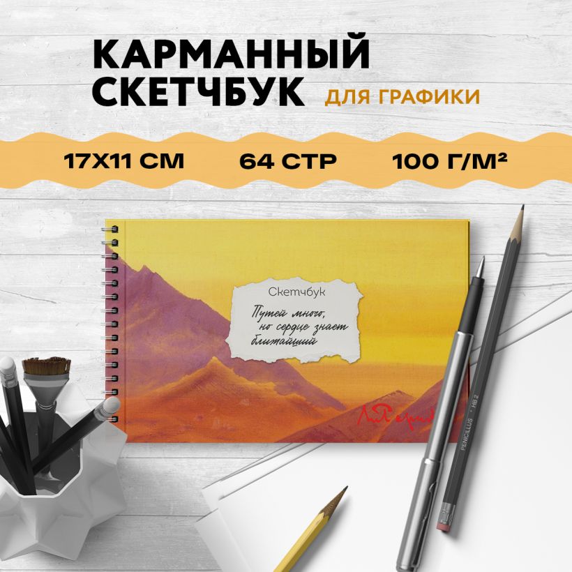 Скетчбук карманный с подложкой. Рерих (А6, 32 л., горизонтальный на пружине)