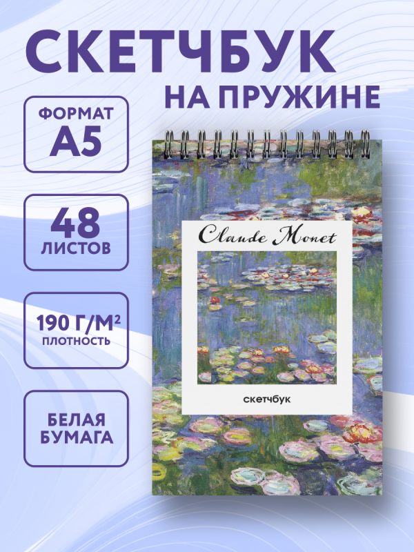 Клод Моне. Скетчбук классический на пружине. Кувшинки. (А5, 48 л., офсет 190 гр.)
