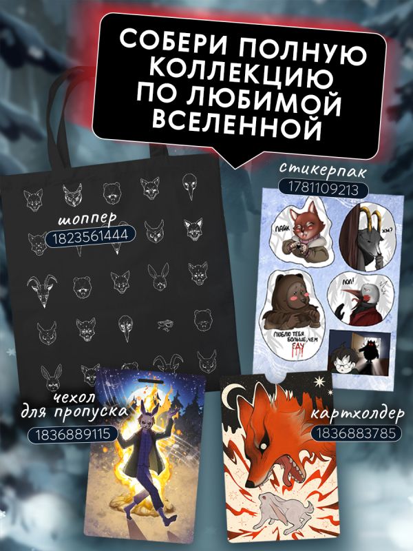 Читай рассказ в классическом варианте или в виде комикса, а может быть, тебе придется по душе формат вебтуна. Не расставайся с любимыми героями ни на минуту, собери коллекцию мерча с персонажами комикса, состоящую из значков, брелоков, стикерпака, шоппера, картхолдера, чехла для пропуска, арт-блокнота! И это еще не все — список будет пополняться!