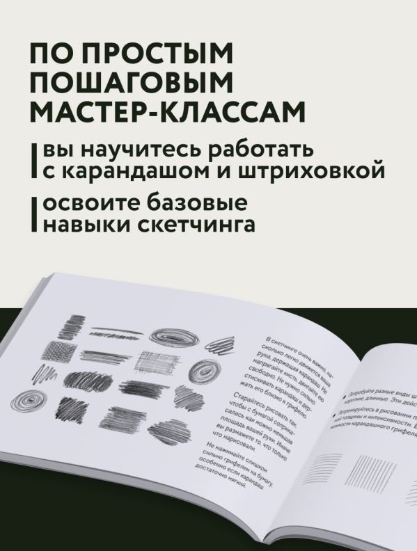 По простым пошаговым мастер-классам вы научитесь работать с карандашом и штриховкой, освоите базовые навыки скетчинга и сможете нарисовать любое животное — от дружелюбного ретривера до забавного хамелеона. Кроме того, вы узнаете, как работать со светом и тенью, строить объем и создавать рисунки с объектами в движении.