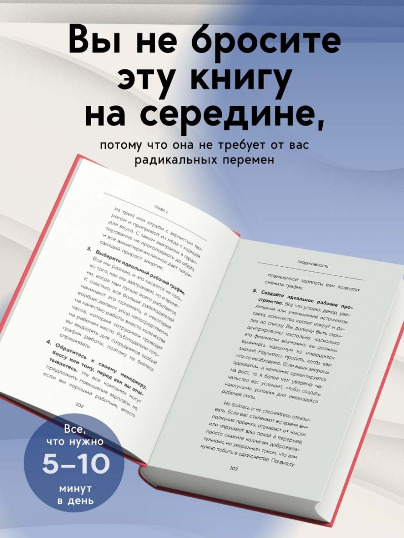 Эта книга предлагает рабочую систему из 50 микрошагов к лучшей версии своей жизни. Их поэтапное внедрение займет всего 5—10 минут в день, но приведет к реальным результатам: вы перестанете откладывать на понедельник и начнете прямо сейчас правильно питаться, читать хорошие книги, заниматься спортом и повышать заработок.