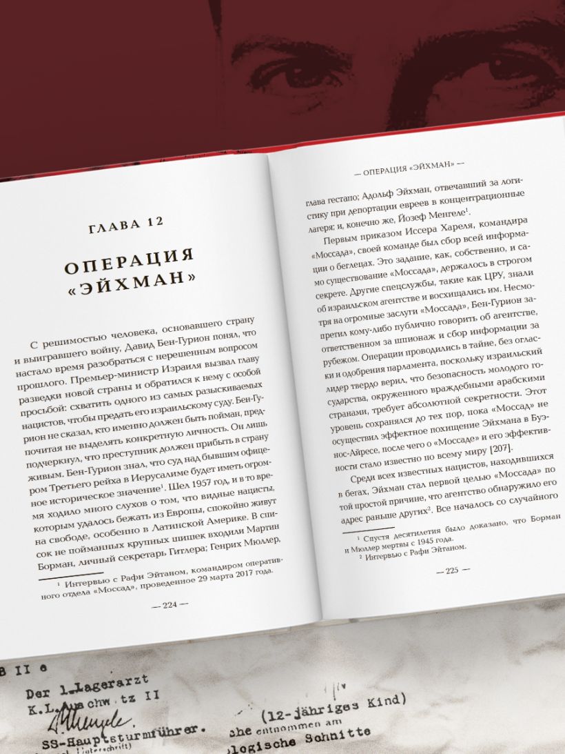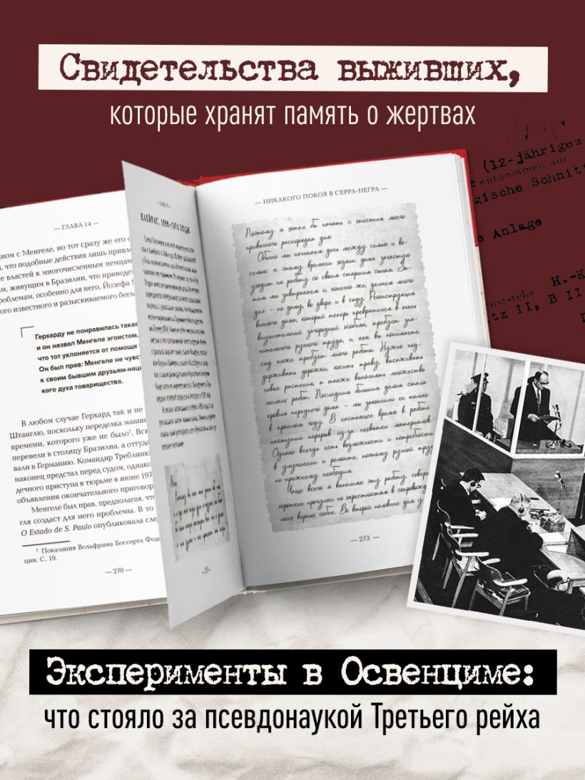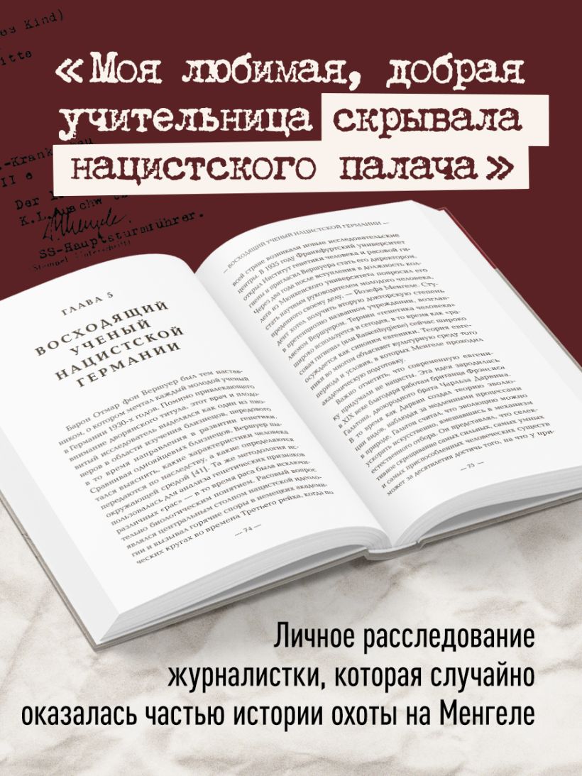 Но вместо суда он десятилетиями жил в Южной Америке. Сначала — открыто, в кругу бывших эсэсовцев, которых защищал аргентинский диктатор Перон. Позже — в бегах, пользуясь поддержкой своей семьи и тайных покровителей. Его укрывали те, кто прекрасно знал, кем он был. Среди этих людей оказалась и школьная учительница Бетины Антон — автора книги.