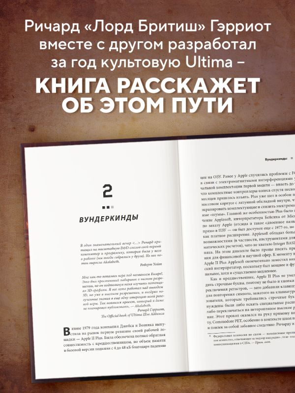 Андреа Контато проследил историю легендарного разработчика от детства и юности до пика карьеры. На страницах книги он увлекательно расскажет о жизни Гэрриота, его творческом пути, его отношениях с важными для него людьми и, конечно, о том, как рождалась знаменитая серия Ultima.