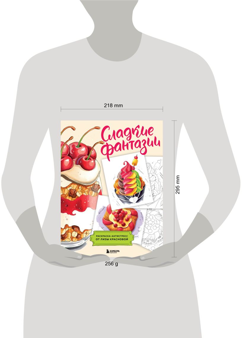 Давно хотели немного подсластить будни и наполнить жизнь яркими красками? Раскраска-антистресс «Сладкие фантазии» — то, что вам нужно! Экзотические фрукты, шоколадные десерты, согревающие напитки, ароматная выпечка — все это ждет вас на страницах раскраски от Лизы Красновой, популярной художницы и автора книг по рисованию «Маркеры! Все о цвете, материалах и скетчах» и «Раскрашиваем маркерами с Лизой Красновой. Пошаговые уроки», чьи рисунки покорили русскоязычный интернет!