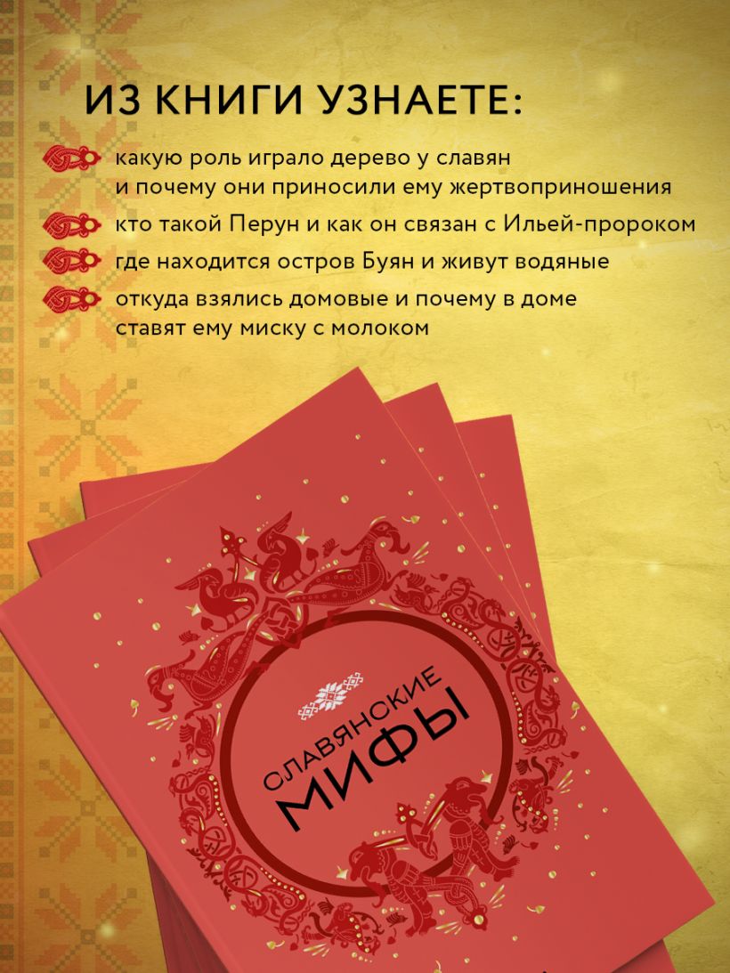 Из книги «Славянские мифы» вы узнаете о формировании эпоса, о появлении мифологических образов и приемов в русских былинах. Она описывает первых богатырей и их возможное происхождение от древнеславянских божеств. Помимо этого, книга содержит множество интересных фактов о том, как мифологический образ отражается в искусстве, быте и культуре, что делает эту книгу поистине уникальной.