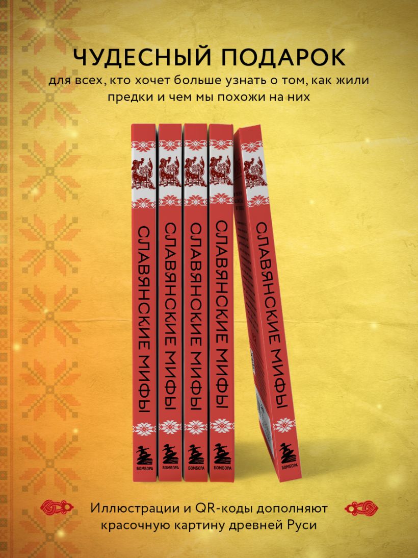 Вы познакомитесь с такими божествами, как Перун, Сварог и Велес, Ярила, Мокошь и Лихо, с нечистью, которая нашла свое воплощение в фольклоре: Баба-яга, Кощей Бессмертный, Мороз и Водяной. Вы узнаете об обычаях и традициях, которые зародились в древности, но живы и сегодня — как, например, установка новогодней елки или традиция прыгать через костер на Ивана Купалу. Цветные и черно-белые иллюстрации, QR-коды, ведущие на страницы музеев и энциклопедий, дополнят путешествие в мир славянских мифов и легенд!