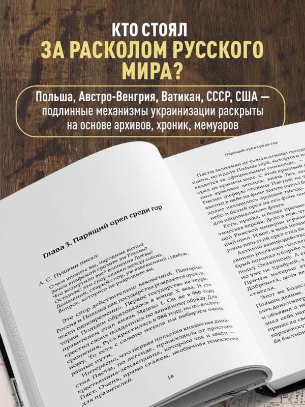 В книге описываются междоусобицы между славянскими народами и их провокаторы, православный Херсонес и историческая роль гетманов Хмельницкого и Мазепы, красная украинизация ХХ века, голодомор и история бандеровщины, войны за Крым и попытки развертывания военных баз НАТО на полуострове в начале века ХХI.