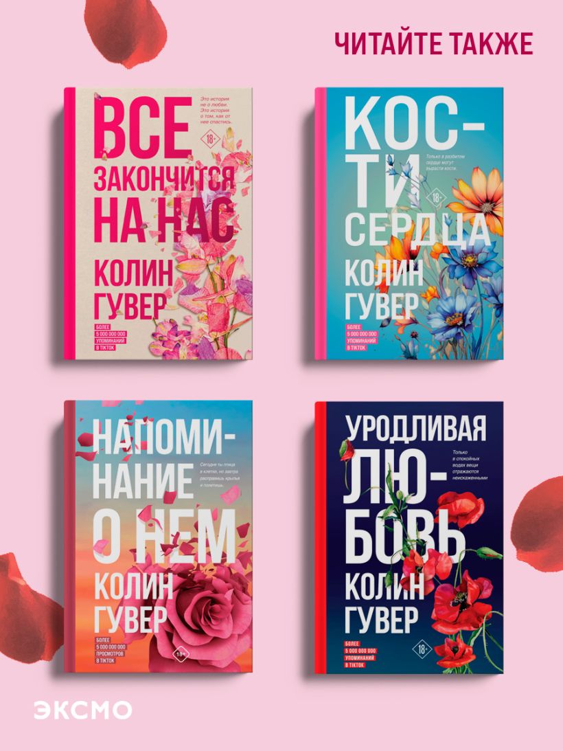 Колин Гувер — литературный феномен нашего времени, троекратная обладательница премии Goodreads Choice Award в номинации «Любовный роман». Ее произведения переведены на десятки языков. Она — мировой тренд. Продажи книг Колин Гувер превысили продажи Стивена Кинга и Джорджа Мартина.