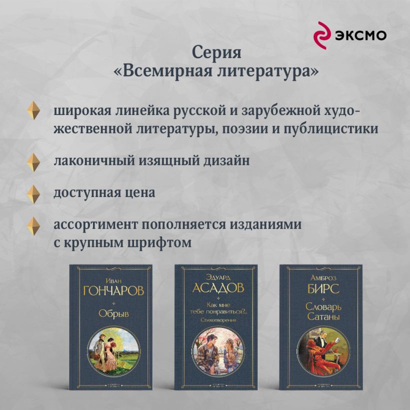 Сборник «Потусторонние истории» Эдит Уортон представляет собой изящную и мастерски составленную коллекцию из пятнадцати рассказов Эдит Уортон, в которых жанр классических историй о призраках переплетается с глубоким психологизмом и социальным подтекстом. Эти рассказы погружают читателя в атмосферу необъяснимой тревоги, мистики и напряжённого ожидания, где призраки часто становятся метафорой моральных конфликтов, подавленности и душевных терзаний. Действие происходит в мрачных особняках и отдалённых усадьбах, а главными героями чаще всего оказываются женщины, сталкивающиеся с ограничениями своего времени и собственного положения. Их внутренние страхи, боль и одиночество преобразуются в непостижимые сверхъестественные явления. Стиль Уортон характеризуется тонкой психологической проработкой персонажей, насыщенностью описаний и тщательным построением сюжета, что делает рассказы одновременно элегантными и глубоко тревожащими. Этот сборник — не просто классика ужасов, а проникновенное исследование человеческой души, скрывающейся за маской внешнего благополучия. «Потусторонние истории» — книга для тех, кто ценит не только атмосферу сверхъестественного, но и художественную силу слова, раскрывающего неизведанные глубины человеческого страха и чувства вины. Эдит Уортон — автор более двадцати романов и десяти сборников рассказов — первая женщина-писательница, удостоенная Пулитцеровской премии в 1921 году. Такие произведения Уортон, как «Обитель радости», «Итан Фром», «Эпоха невинности», «Плод дерева», вошли в «золотой фонд» американской литературы. Капсульная коллекция внутри серии «Элегантная классика»! Любовь многогранна, может вознести, а может разбить сердце. Любовь может идти рука об руку с притягательной тьмой, манящей в потусторонние миры. Поэтому в привычный макет серии мы добавили темные краски, убийственно красивые цветы, а также животных-проводников. Капсулу объединяет общая тематика мистического и картинка на корешке, внутри макет с иллюстрациями.