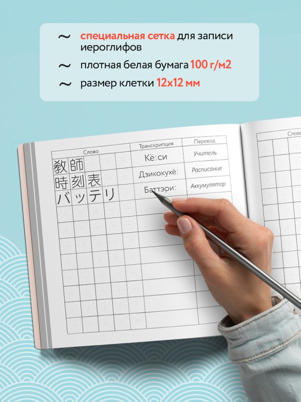 Серия словарей для записи азиатских слов служит полезным помощником при изучении восточных языков. Специальная сетка для записи иероглифов поможет аккуратно записать слово в ячейках первой колонки; рядом предусмотрены колонки для транскрипции и перевода. Повторяйте новую лексику, закрывая нужное рукой или листом бумаги.