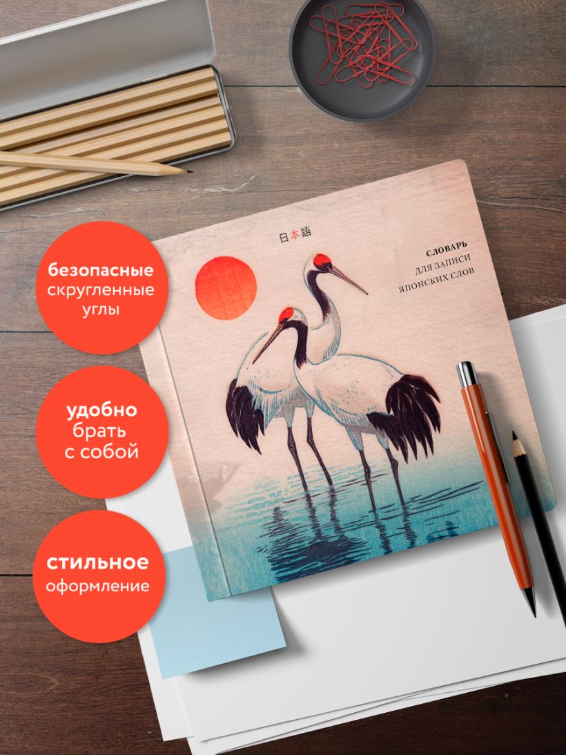 Словарь для записи японских слов (15х15 см) (Акварельные цапли)