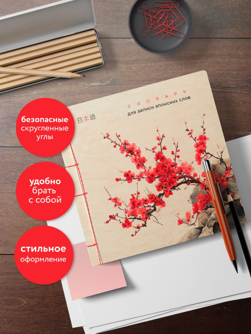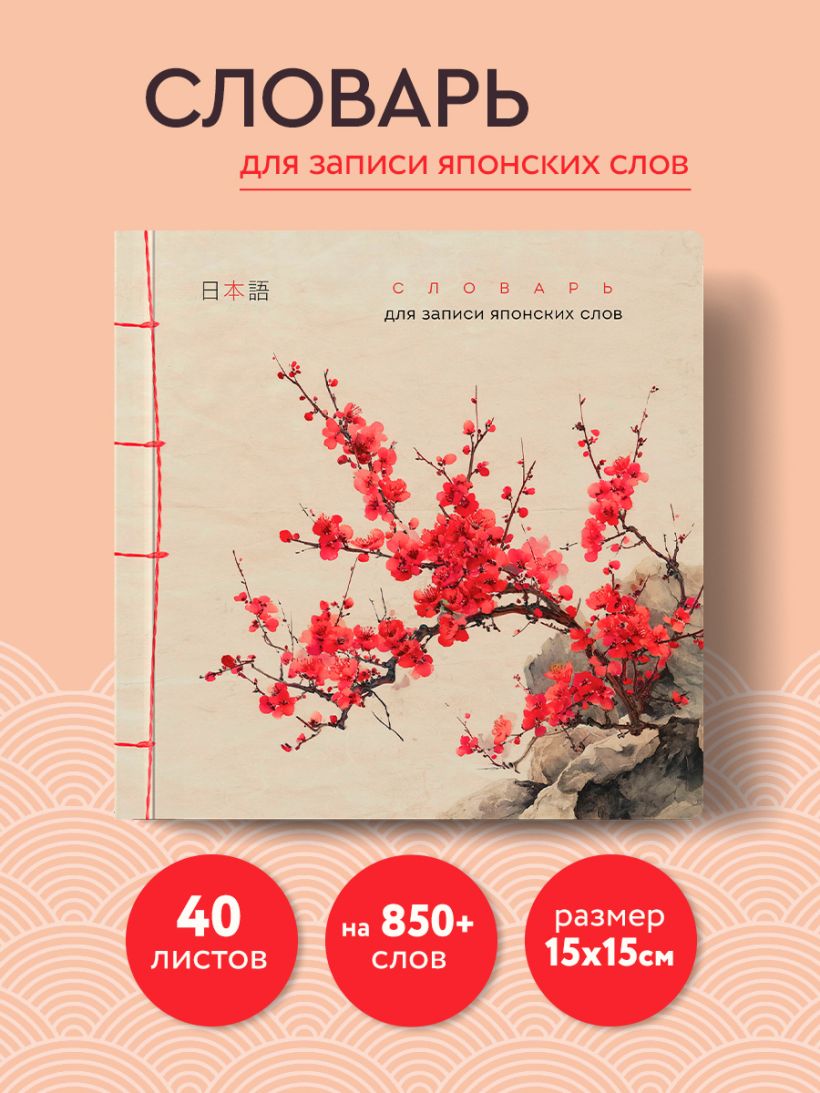 Словарь для записи японских слов (15х15 см) (Красная сакура)