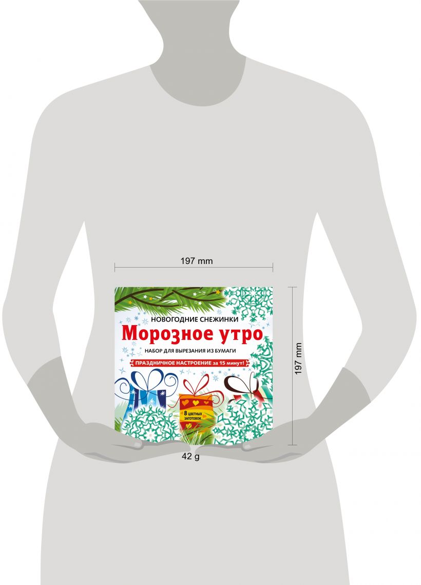 В комплекте вы найдете цветные листы-заготовки с уже нанесенной разметкой контура для вырезания восьми ажурных снежинок. Вам нужно всего лишь открепить скрепку, разрезать листы по сгибу, сложить лист-заготовку по приведенной на обложке схеме и затем вырезать ножницами снежинку по линиям. Рекомендуем этот набор взрослым, детям, а также взрослым детям — то есть всем, кто верит в чудеса и с нетерпением ждет Нового года!