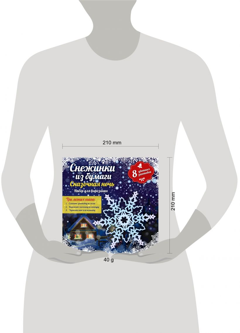 Что внутри? В комплекте вы найдете десять цветных листов-заготовок с уже нанесенной разметкой контура для вырезания ажурных снежинок. Вам нужно всего лишь сложить лист-заготовку по приведенной на упаковке схеме и затем вырезать ножницами снежинку по линиям. Для кого и зачем: Для взрослых, детей, а также для взрослых детей – то есть для всех, кто верит в чудеса и с нетерпением ждет Нового года! Снежинками можно украсить окно, зеркало, елку, открытку, использовать для сервировки праздничного стола или в качестве дополнения к упаковке новогоднего подарка.