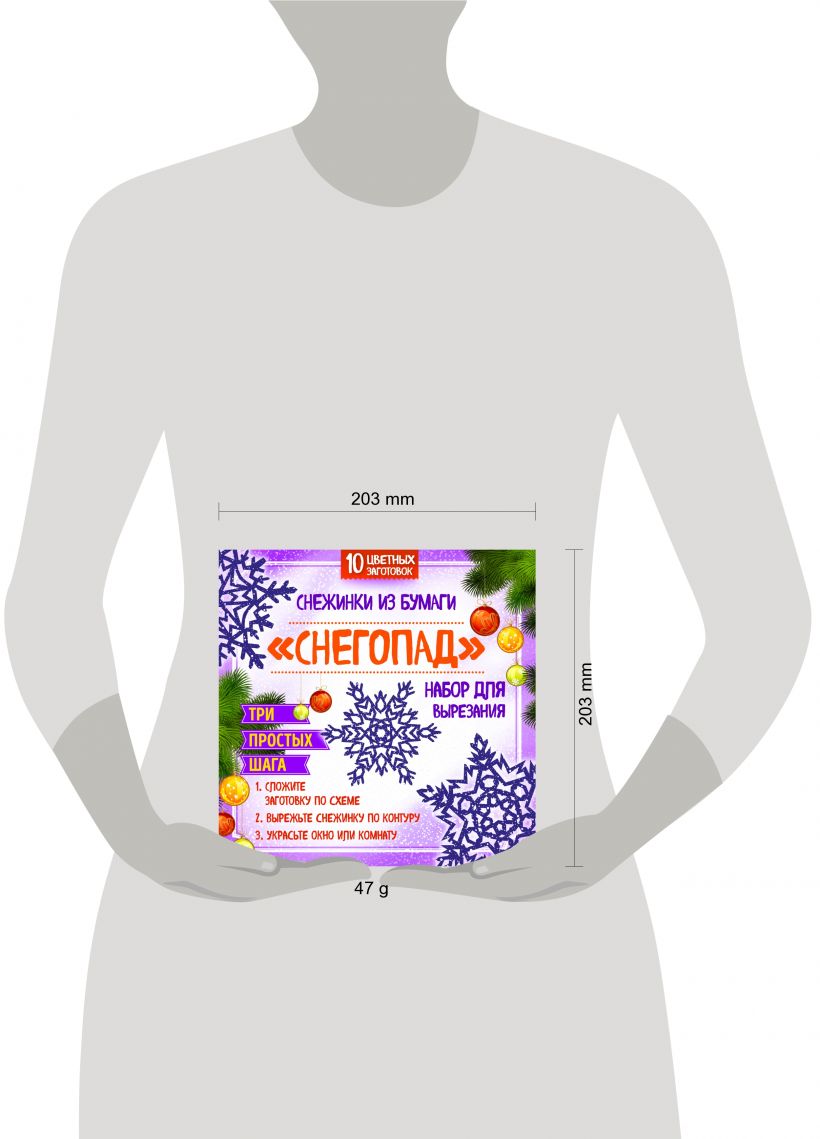 Снежинками можно украсить окно, зеркало, елку, открытку, использовать для сервировки праздничного стола или в качестве дополнения к упаковке новогоднего подарка. В комплекте вы найдете десять цветных листов-заготовок с уже нанесенной разметкой контура для вырезания ажурных снежинок. Вам нужно всего лишь сложить лист-заготовку по приведенной на упаковке схеме и затем вырезать ножницами снежинку по линиям.
