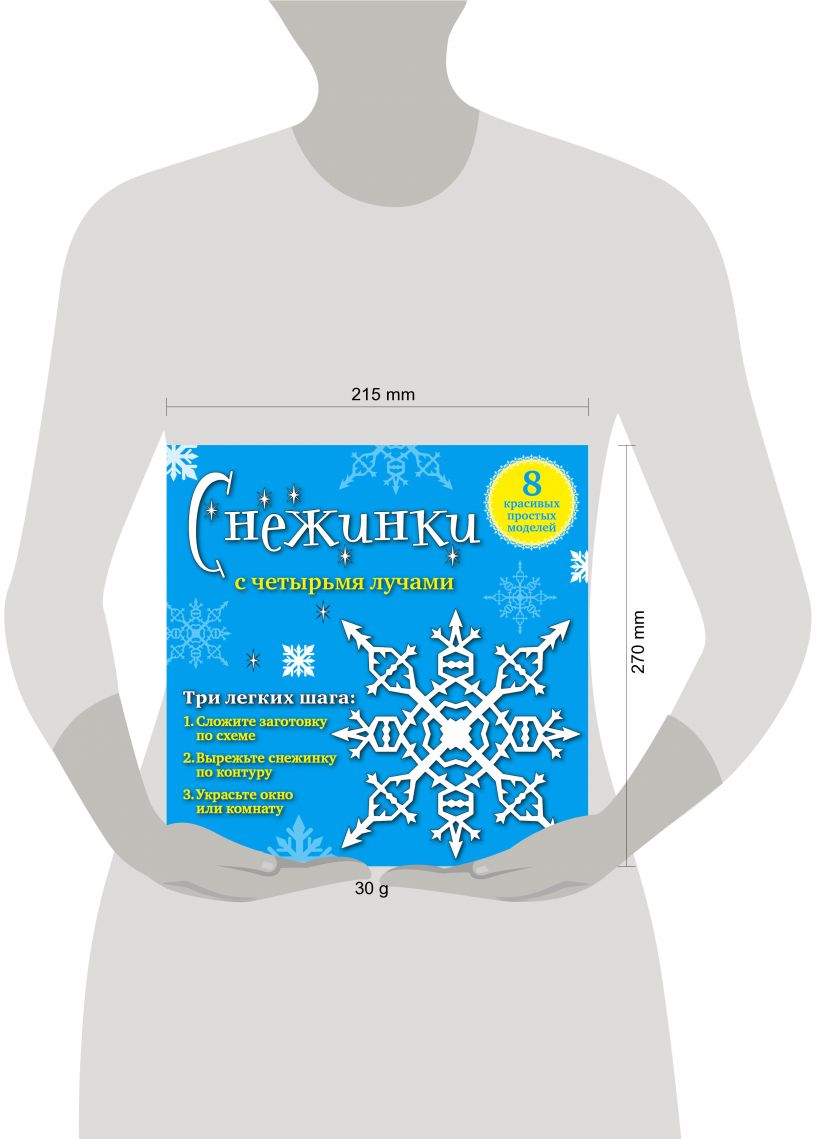 Вместе с комплектом, который мы представляем вашему вниманию, результат всегда будет великолепным! В комплекте вы найдете восемь цветных листов-заготовок с уже нанесенной разметкой контура довольно простых для вырезания снежинок с четырьмя лучами.