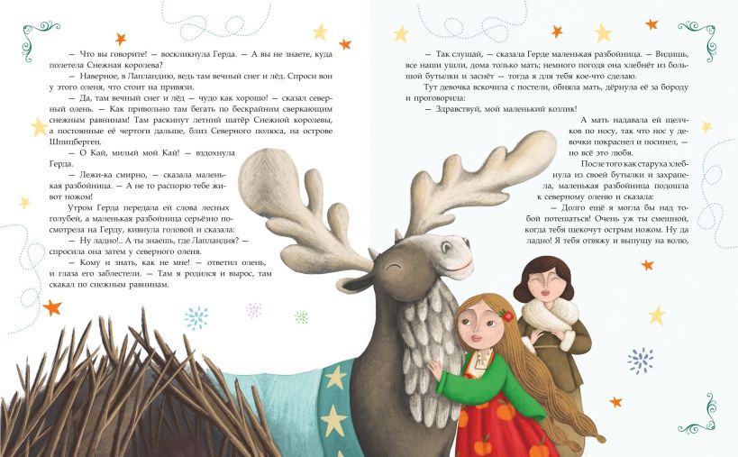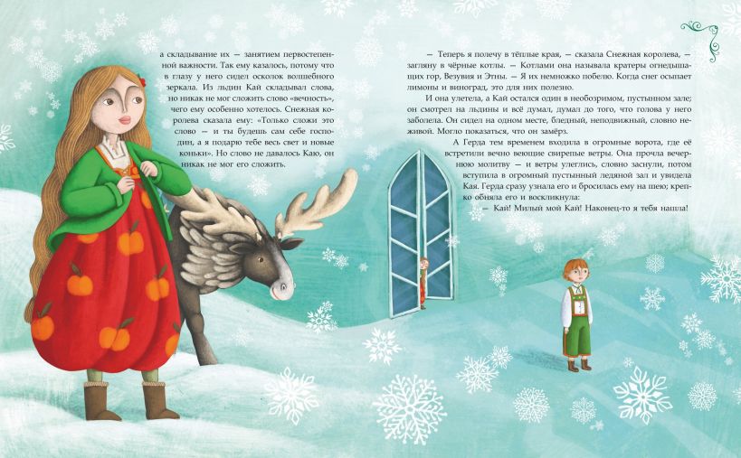 «Снежная королева» — самая известная сказка Ганса Христиана Андерсена, переведённая на 126 языков мира, второе столетие подряд остаётся одной из самых важных книг детства. В увлекательном сюжете переплелись колдовство и красота, необыкновенное путешествие, удивительные герои, самоотверженность, надежда и, конечно, яркое торжество добра над злом. Маленькая отважная Герда докажет всему миру, что верная дружба и преданная любовь способны растопить даже ледяное сердце, а полчища Снежной королевы бессильны перед искренней и горячей верой.