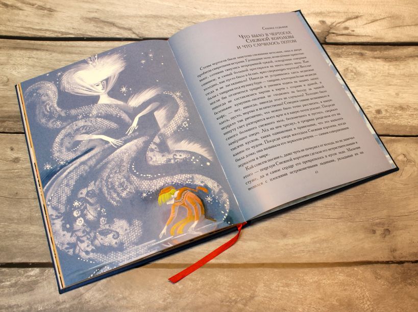Книга «Снежная королева» великого Ганса Христиана Андерсена — прекрасный подарок на новогодние праздники современным детям и, конечно, взрослым книголюбам. Настоящее шелковое оформление, украшенное изящными золотыми нитями, станет прекрасной драгоценностью на любой книжной полке.