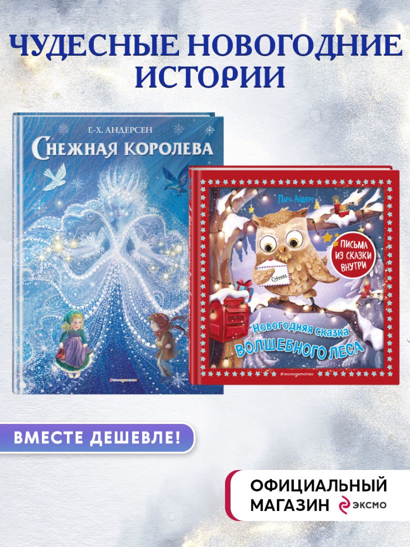 Комплект включает 2 книги, которые помогут ощутить атмосферу наступающего торжества – "Новогодняя сказка Волшебного леса" Лары Андерс и "Снежная королева" Ганса Христиана Андерсена.
