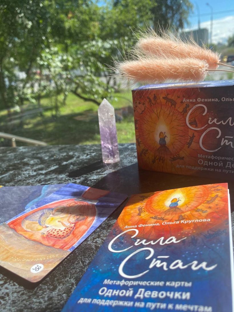 Внутри — 72 карты великолепного качества и изящная книга, в которой можно найти послания к каждой карте и список действенных методик по работе с подсознанием. Колоду можно использовать без книги, с книгой, и даже — книгу отдельно от колоды. Карты «Сила Стаи» станут настоящим талисманом для женских кругов, дружеских встреч, обогатят арсенал помогающего специалиста и, конечно, помогут вам найти самую красивую дорогу к своей мечте.